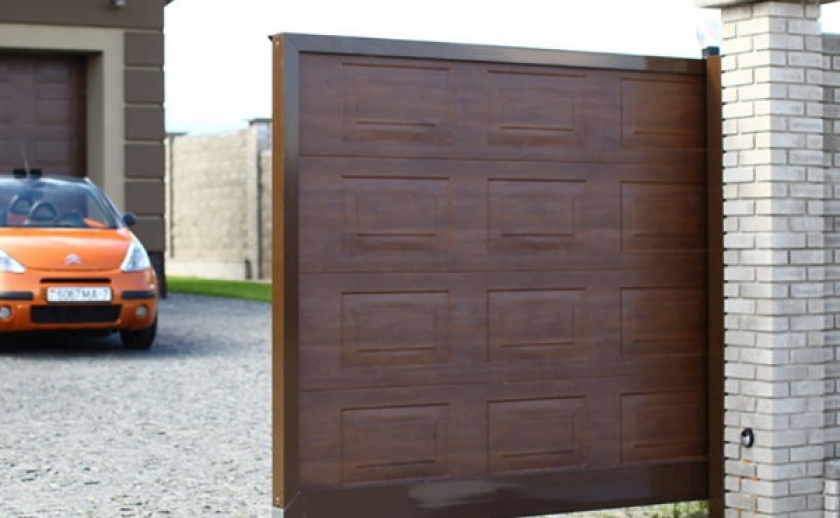 Ворота из сэндвич-панелей, имитирующих текстуру древесины (золотой дуб, темный дуб, вишня), обладают всеми преимуществами стальных ворот и придают коттеджу элементы престижа и индивидуальности.